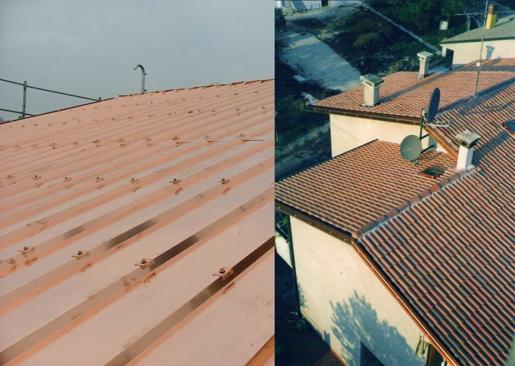 fornitura e posa di grondaie, copertine scossaline, profili e ogni altro genere di canali pluviali: in rame, alluminio, lamiera zincata e preverniciata , accioao inox. coperture metalliche e risanamento tetti, tegole e/o coppi con bloccaggio a schiuma Realizzazionedi camini e abbaini su misura in loco